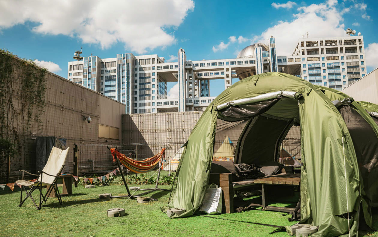 可愛いテントやおしゃれな内装、ソファーやダイニングなど設備が充実。