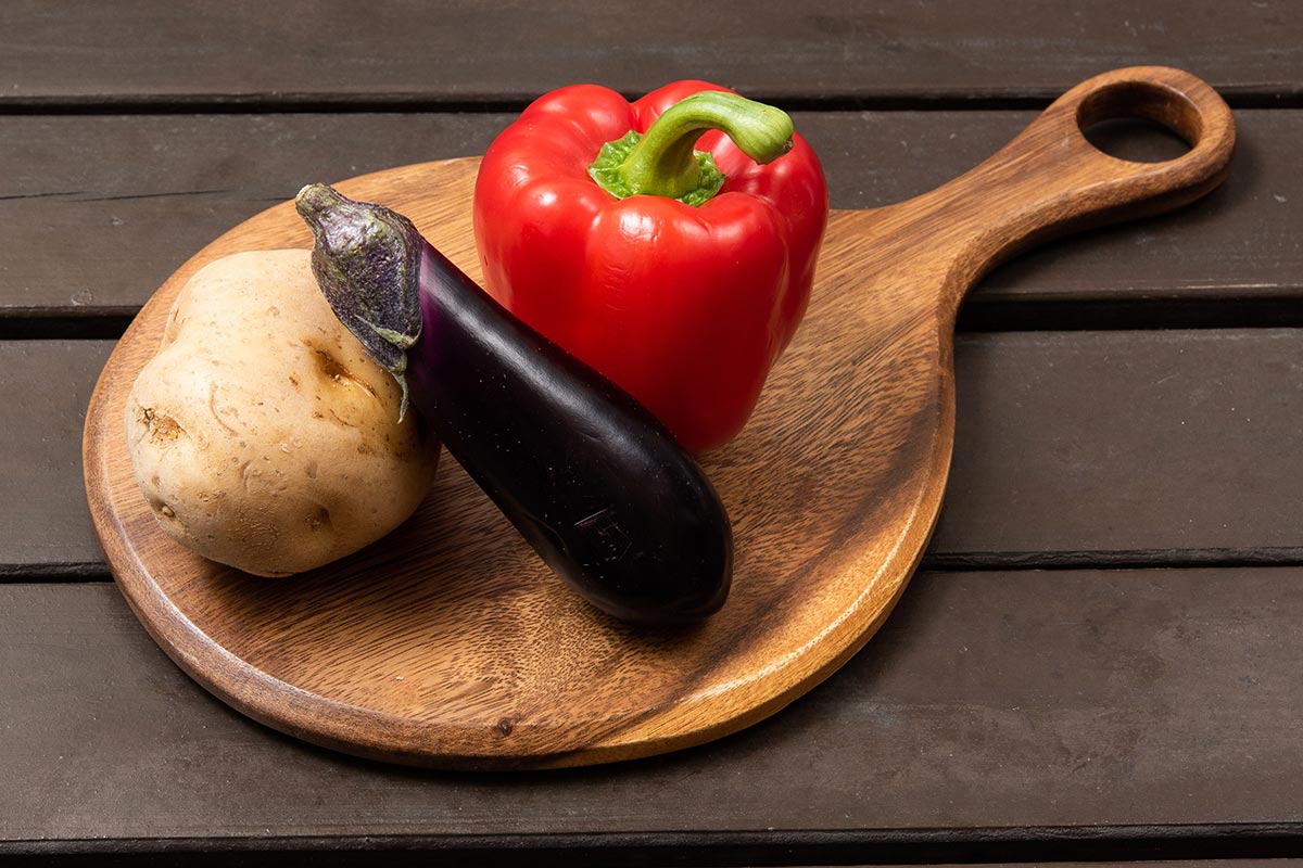 - ・3種カット野菜:各1切れ(カボチャ、人参、ピーマン)